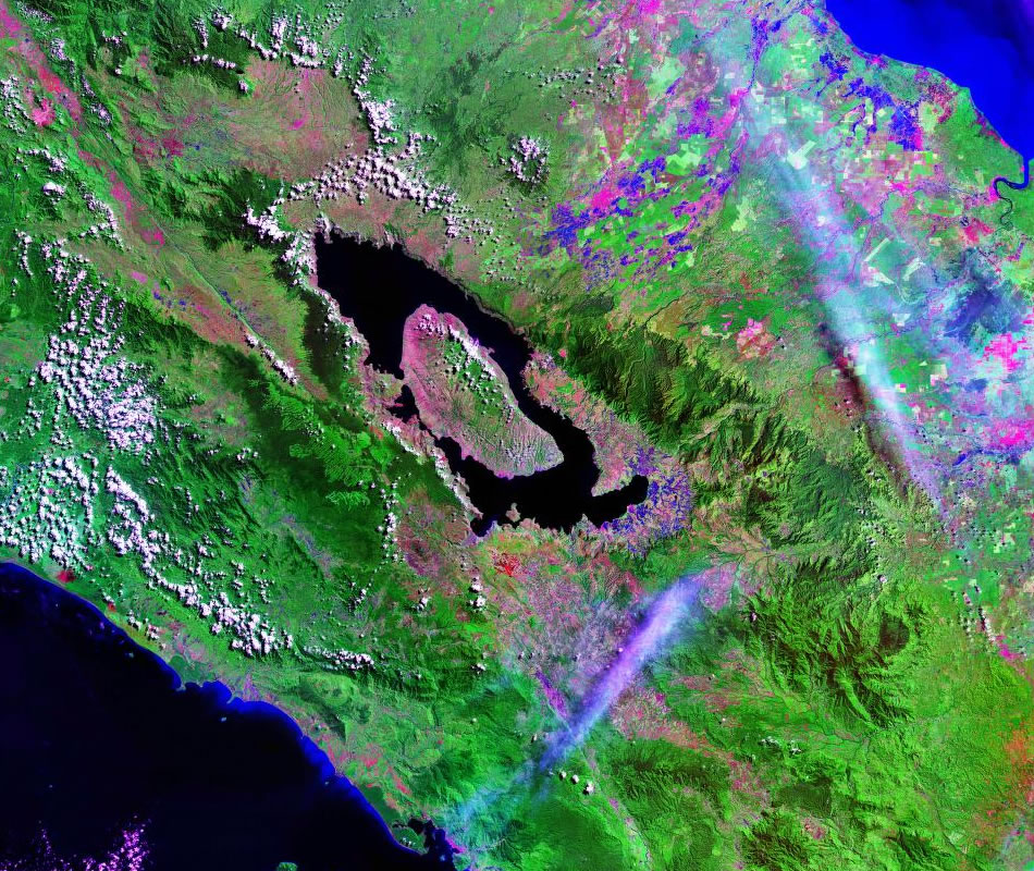 The lower fang is the island of Phuket. The eye of this serpent is called Lake Toba, and it's actually the site of a super volcanic eruption long a go.